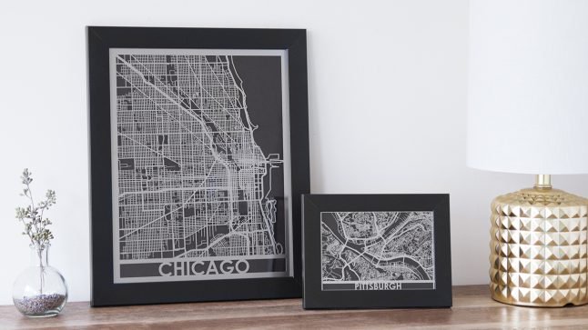 Like urban lace, Cut Maps showcase the unique patterns formed by city streets, parks, landmarks, and natural boundaries. To residents, the streets and neighborhoods don’t need any labels. They can instantly recognize addresses and stomping grounds. To the unfamiliar, the geographic details are an invitation to explore new territories. This intersection of technology and art create a perfect gift for the city dweller.